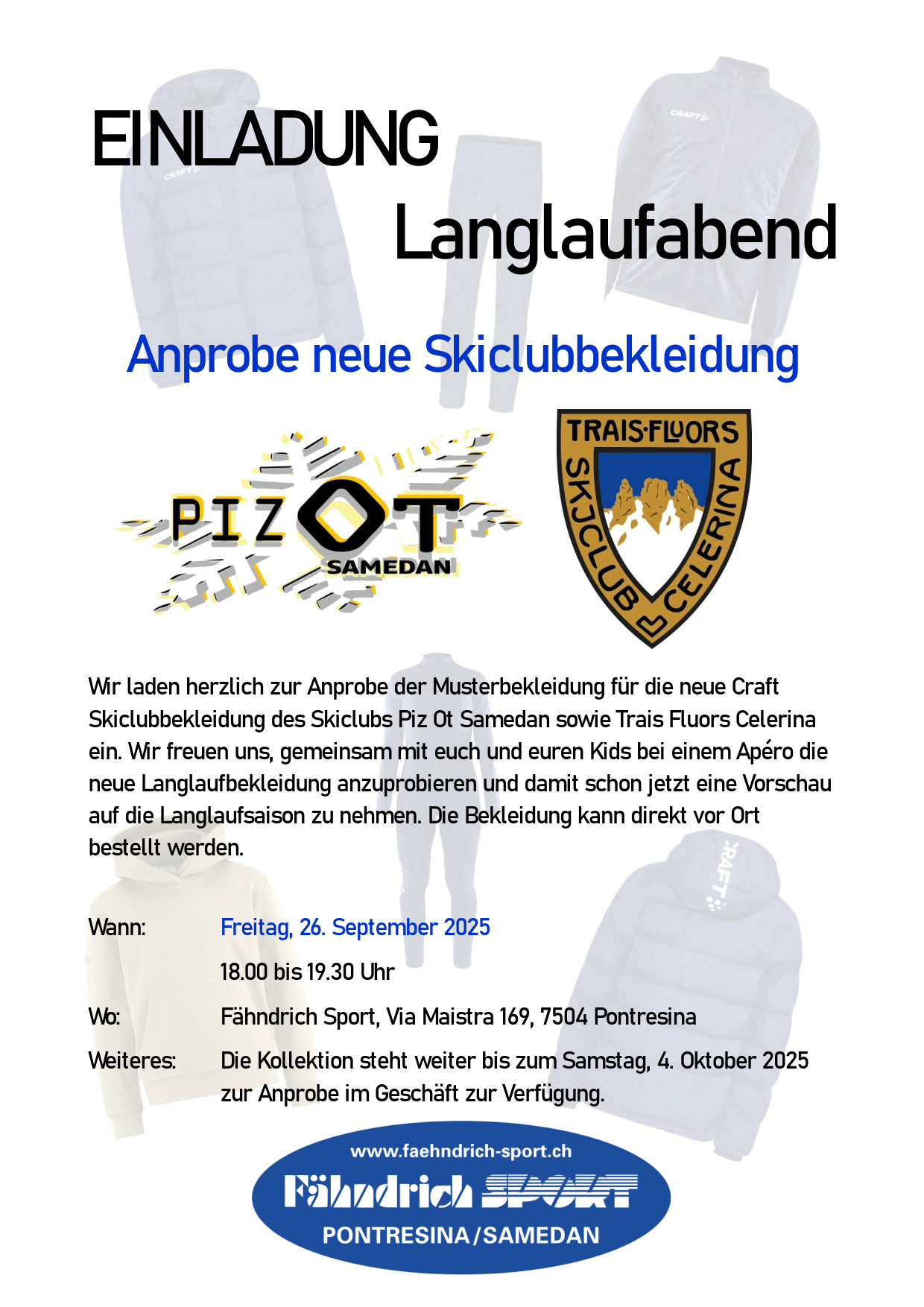 Anprobe neue Skiclubbekleidung Langlauf am Freitag, 26. September 2025 im Fähndrich Sport in Pontresina